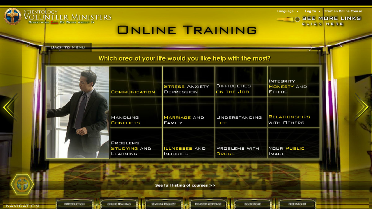 Qui un utente può mettersi in comunicazione con un Ministro Volontario per chiedere aiuto personale, guardando ognuno dei film di Strumenti per la Vita e può anche iscriversi a ognuno dei seguenti corsi on-line: